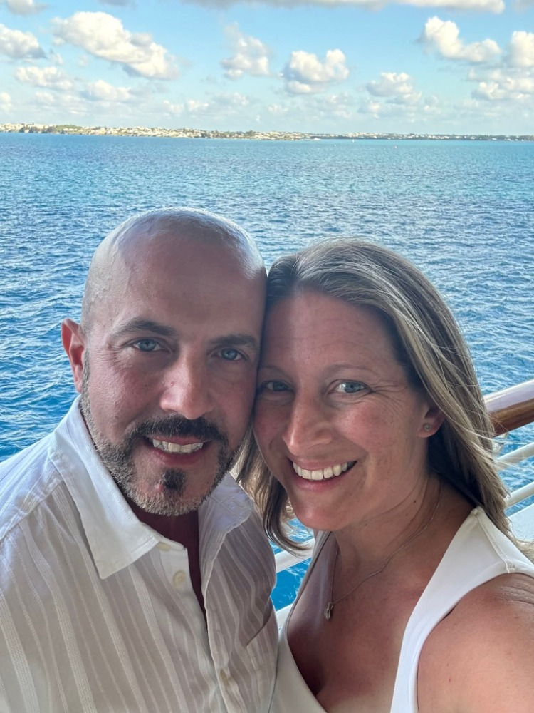 "Words cannot express how grateful we were to experience such a beautiful, relaxing vacation! Ginny, Team Bruce, Ester and Team Kick Cancer Overboard, THANK YOU for giving John and I this amazing gift. The memories we created will forever be imprinted! 💕 We made new friends, saw excellent shows, danced, ate delicious food, relaxed, laughed, enjoyed the sun and the beautiful beaches in Bermuda, and spent the quality time we needed with each other 🩷"